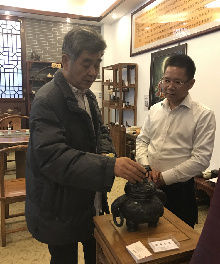 近日,享譽(yù)中國(guó)茶壇的《茶席設(shè)計(jì)》書籍作者、著名的《大漢熏香》香藝表演節(jié)目作者、國(guó)家級(jí)茶藝競(jìng)賽裁判員、現(xiàn)任上海市香藝研究所所長(zhǎng)喬木森老師蒞臨酉圓香堂參觀訪問,我司董事長(zhǎng)李榮清先生親自參與接待并與喬老對(duì)香器及周邊產(chǎn)業(yè)進(jìn)行深入交流。