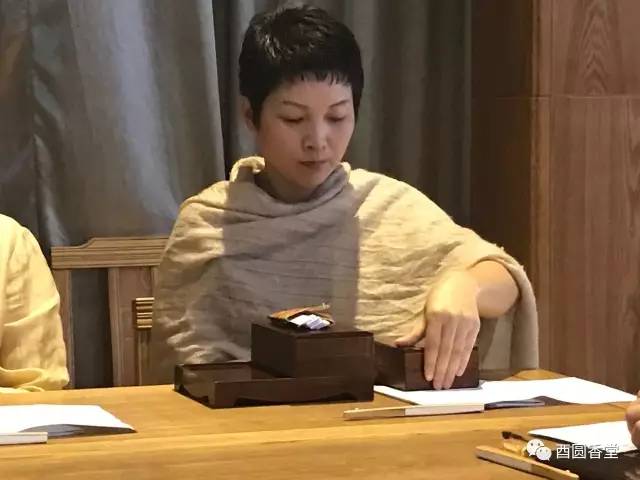 來自重慶的李莫云 ,1997年畢業(yè)于四川美術(shù)學(xué)院。抹云山房香修美學(xué)空間創(chuàng)始人,文園天地藝術(shù)館合作伙伴。中華香文化傳承人,日本泉山御流香道傳習(xí)人。對東方美學(xué)與傳統(tǒng)香文化有深入的研究和獨特的見解。圖為在課程中任香元角色。