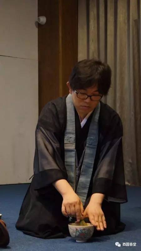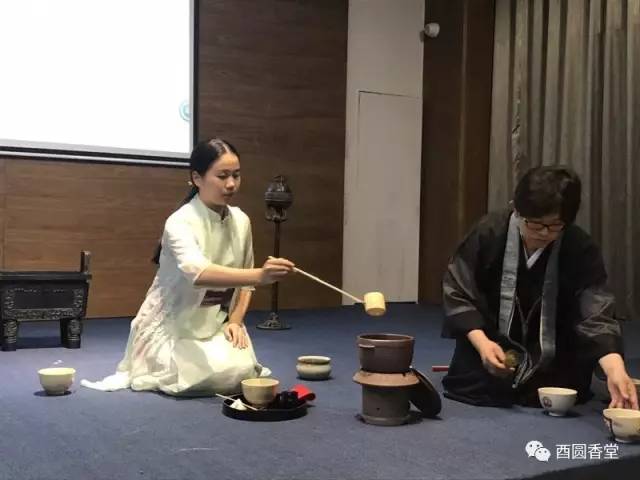 此次課程中同學(xué)們還分別感受了日本的抹茶道。圖為東莞沉香文化博物館香文化老師張麗金學(xué)員在點茶。