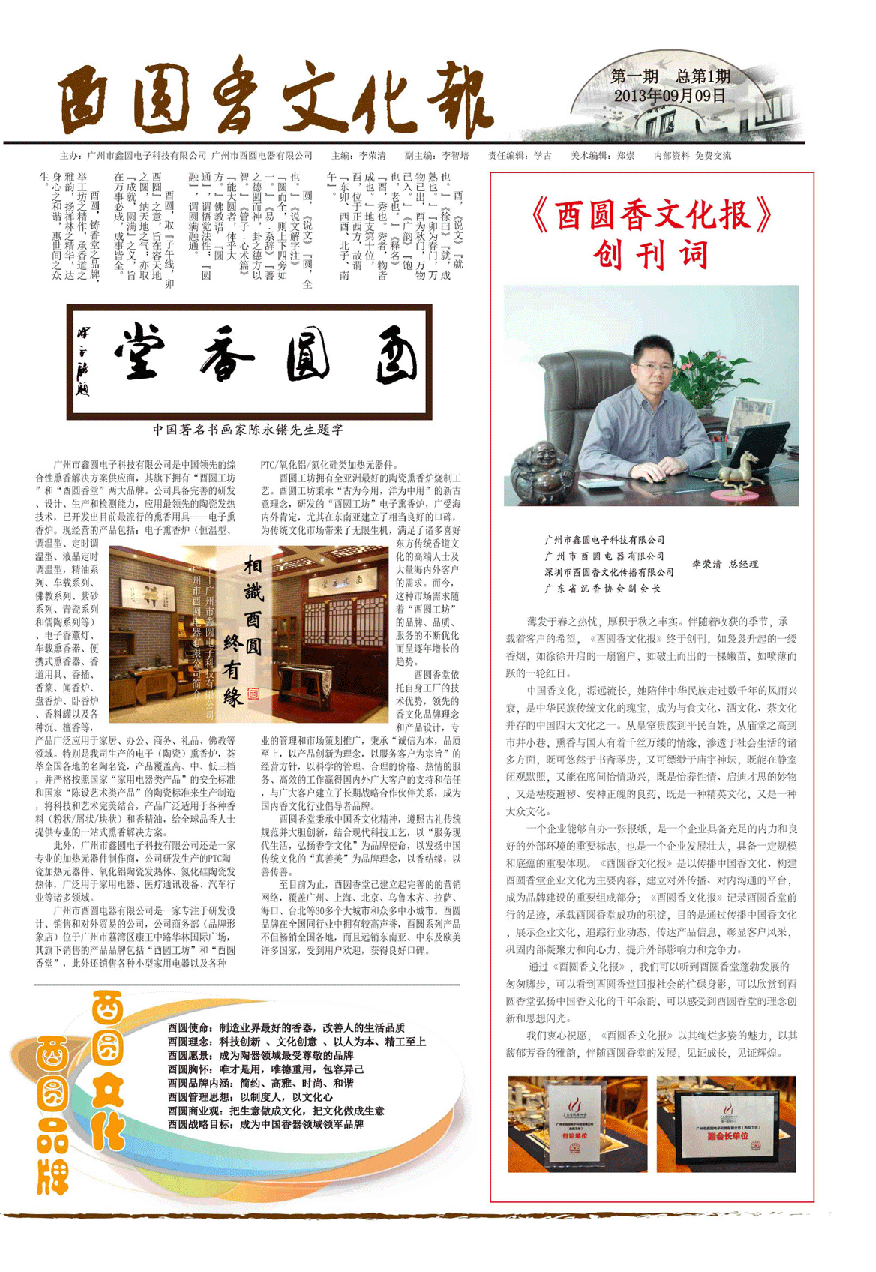 《酉圓香文化報》的創辦發行是國內香文化傳播領域的標志性事件。《酉圓香文化報》通過傳播香道文化、展示企業風采、傳達產品信息、追蹤行業動態等方式,忠實記錄酉圓香堂前行的足跡。《酉圓香文化報》作為內部發行刊物,將主要以免費贈閱的方式對外發行,以報為媒,以香結緣。