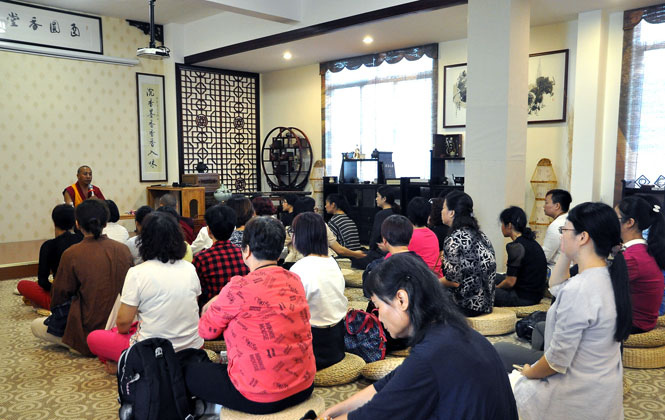 2015年11月17日,藏傳佛教青海陀樂寺主持阿旺嘉措金剛上師蒞臨酉圓香堂傳法講學,講授佛教「快樂人生」的圓融智慧。上師首先開示,離苦得樂是佛教的根本要旨所在。所謂的“苦”包括兩個方面,有身體上的苦,也有精神上的苦;所謂的“樂”也包括兩個方面,有外在物質的快樂,也有內在精神的快樂。佛教八萬四千法門,就是八萬四千種離苦得樂的方法。上師接著開示,要想擁有快樂人生,還必須要懂得因果報應,因果報應簡而言之就是善有善報、惡有惡報。要相信因果,只有不斷消除業障,才能不斷增進福報。最后,上師還教導我們廣大信眾要“以自凈為根本,以利他為原則,以和合為精神,以覺悟為目標”,自凈、利他、和合、覺悟,分別包含了人與自己的關系、與他人的關系、與自然的關系、與世界的關系。修行者要以此四愿行為方針,來維系社會關系、共贏共榮。感恩上師傳法加持,愿人民幸福、國家昌盛、世界和平。