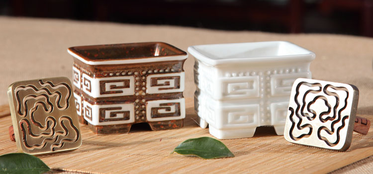 曲水流觴,是古代儒士一種風雅游戲,眾人在彎曲的清溪旁席地而坐,上流放置酒杯,酒杯順流而下,停在誰面前,誰就取杯飲酒賦詩。東晉著名書法家王羲之等曾于蘭亭清溪旁流觴賦詩,留下被譽為“天下第一行書”的《蘭亭集序》,傳為千古佳話,而王羲之也因此被后人尊為“書圣”。香篆造型取自北京圓明園“綺春園流杯亭基座”古跡,以方形流杯篆為創意,鼎爐四方穩重,大氣磅礴,回紋寓意連綿不絕。曲水流觴,流杯打篆,神交古人。