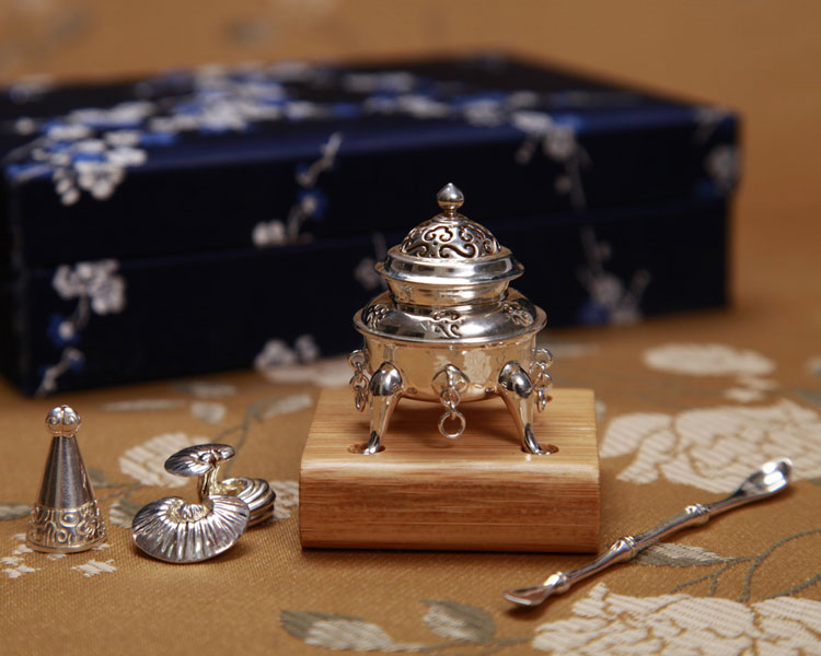四足神獸爐,追思來自大唐盛世的遺風。鐵骨,乃魏征直諫的硬骨;丹心,乃狄仁杰赤誠的忠心。大唐將近三百年間,國力強盛,歷經二次盛世,前有貞觀之治,后有開元盛世,帶給我們豪邁之氣魄和廣闊之胸襟。香爐以四神獸足為腳,寓意威儀勇猛;以丹爐為身,寓意千錘百煉;以將軍帽為頭,寓意馳騁沙場。以文火煉心,以武火煉骨,一陰一陽,鑄成丹心碧血之氣魄、鐵骨錚錚之人格。