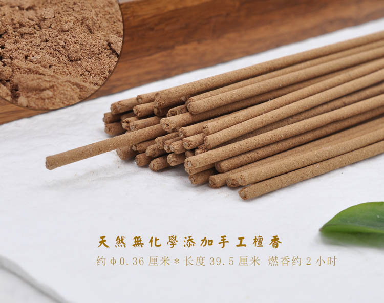 這款線香的特色,采用天然茶竹做內芯。由于茶竹具有煙少且無異味的特點,可以很好的保持檀香原始味道,適用于禪修、禮佛、瑜伽、家居、書房、客廳、辦公等場所,可以起到凈化空氣、幫助入定、緩解焦慮等作用,給人一種祥和、平靜的感覺。